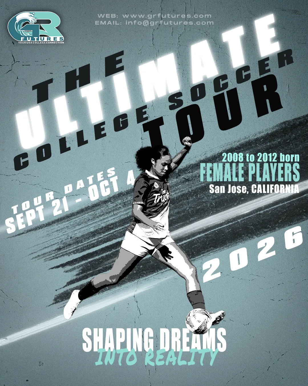 Join Green Room Futures on an unforgettable soccer experience in San Jose, California during the September 2026 school holidays. Two teams will compete in the Medina Fall Classic, a highly regarded U.S. club tournament, while also taking part in training sessions, friendly matches, and college soccer game days.